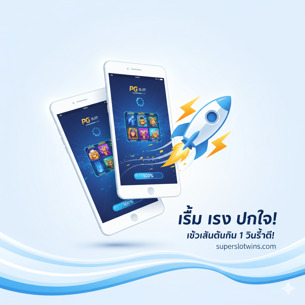 ภาพประกอบสำหรับส่วน 'เร็ว แรง ทันใจ: เข้าเล่นได้ใน 1 วินาที!' และการรองรับมือถือ. แสดงหน้าจอสมาร์ทโฟนและแท็บเล็ตวางซ้อนกัน โดยหน้าจอแสดงเกมสล็อต PG ที่กำลังโหลดอย่างรวดเร็ว (มีแถบโหลดเต็ม 100%). มีสัญลักษณ์ '🚀' (จรวด) หรือ '⚡' (สายฟ้า) อยู่ใกล้ๆ เพื่อเน้นย้ำเรื่องความเร็ว. องค์ประกอบภาพควรสะอาดและทันสมัย (Mobile-First Design) โดยมีแสงสว่างและสีขาวมาก เพื่อให้ดูรวดเร็วและเป็นมิตรกับผู้ใช้. เน้นความต่อเนื่องของการเล่นเกมระหว่างอุปกรณ์ต่างๆ.